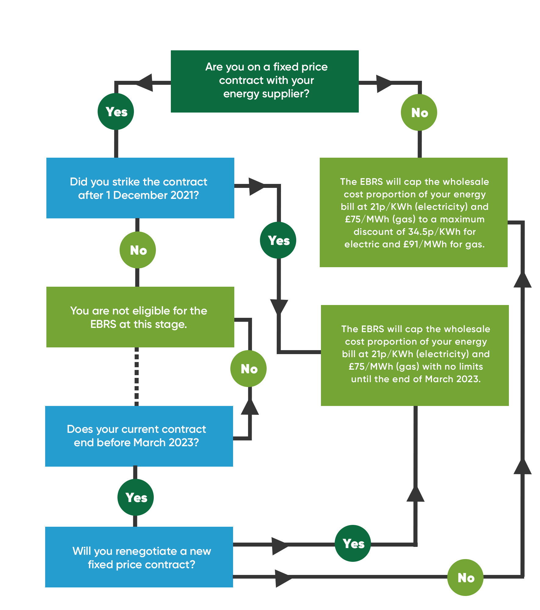 - The timing of your contract determines eligibility: If your business struck an energy supply contract after 1 December 2021, it is eligible for the scheme, as are those on a variable price/out of contract. The discounts should be automatically applied. It is important to be vigilant to scam attempts. If in doubt, contact your supplier. If you have a fixed price contract agreed after 1 December 2021 your electricity will be capped at 21p per KWh and gas at £75 per MWh (circa 220p per therm). This refers to the wholesale price portion of the bill. If you have an energy contract that ends during the six-month period, you can access the scheme by fixing a new contract with a supplier or by defaulting onto the variable rate.
